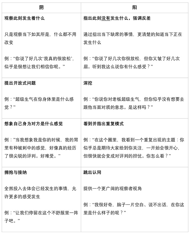 尤其是当人已经有创伤反应时(比如脑子突然空白、陷入恐慌),就更加需要搁置自己深挖细节或犀利指出反差的愿望了。换言之,当你不确定你更阳的表达是否会让空间变得不安全,可以试着先阴一点,观察此刻自己和他人是什么状态,细细甄别自己的头脑和身体里正在发生什么。